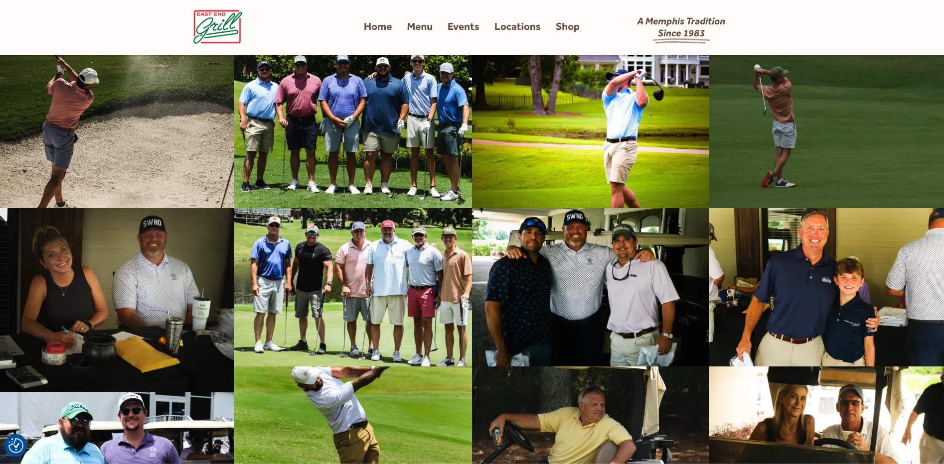 The photo showcase highlights East End Grill’s annual golf tournament at TPC Southwind, celebrating community, friendship, and tradition. The tablet gallery captures the energy and connection of the event, showing that East End Grill is more than a restaurant, it is a Memphis gathering place built on shared experiences.