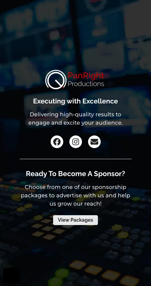 This section highlights PanRight Productions’ valued sponsors, showcasing partnerships that make their work possible. Displayed in a clean vertical layout for mobile, it offers an elegant and balanced way to recognize contributors while reinforcing the brand’s professional relationships and community support.
