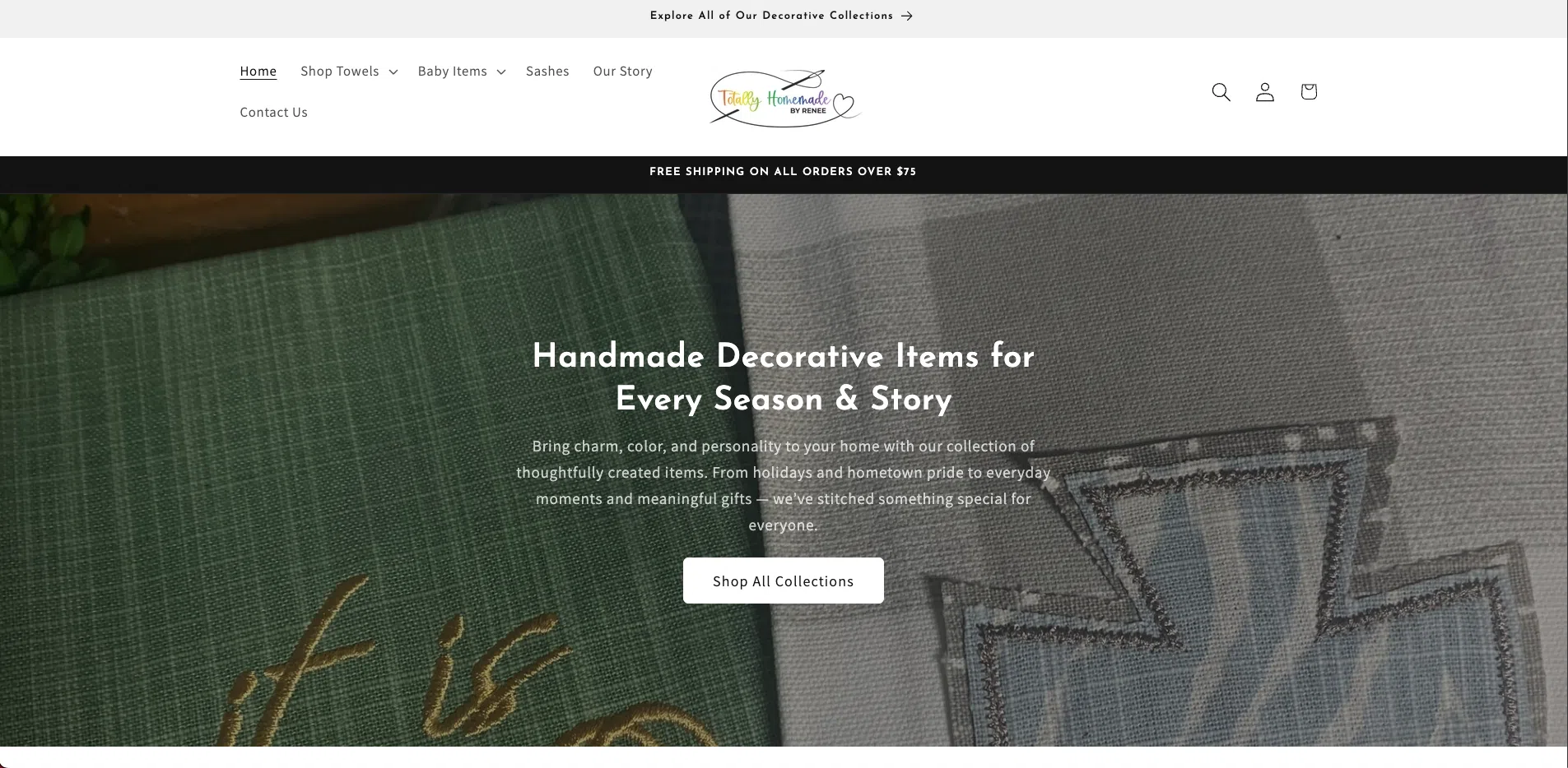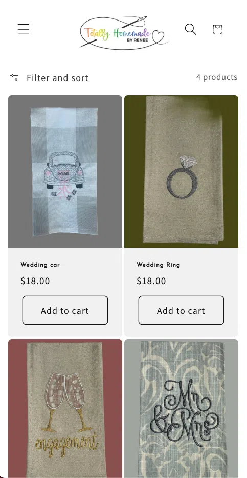 Totally Homemade by Renee is a handmade décor brand specializing in custom decorative towels and gifts. They had already started building their Shopify store but ran into challenges with structure, layout, and usability. They needed help transforming what they started into a professional, fully functional online shop.